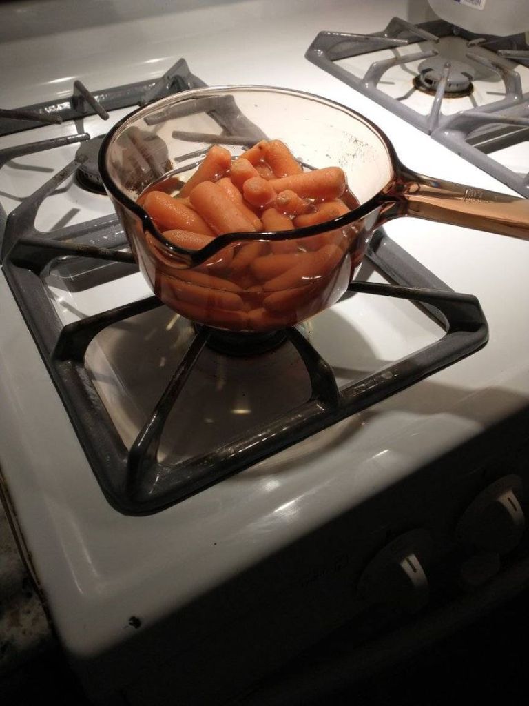Having given it more thought, turning the burner off under the boiling carrots is significant.