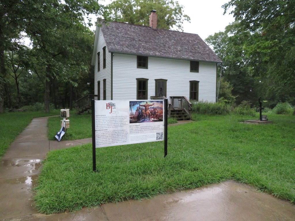 *On November 2 the group crossed the north fork of the Blue River into Kansas and camped at Oak Grove. On November 3 they reach Bull Creek, near Bulltown (present-day Paola, Kansas). – Source. Wiki.