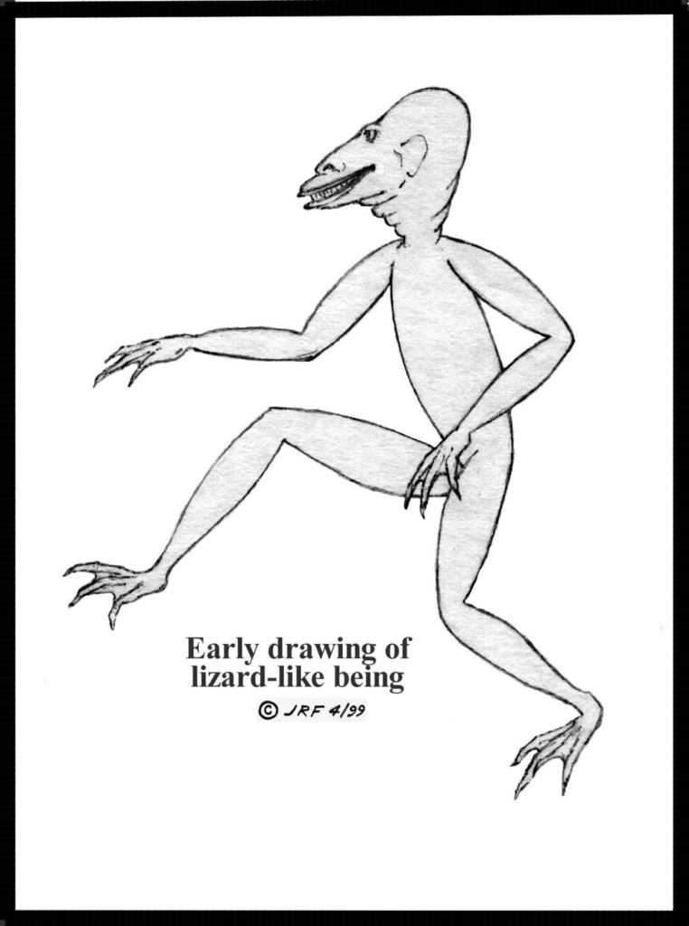 As we talked in the cafeteria he finally told me that my drawings were very similar to some ancient Native American drawings and ancient cliff and cave carvings he had studied. He said the Indians had told him that the small booth and the small lizard-like beings were part of their legends involving “the sky people.”