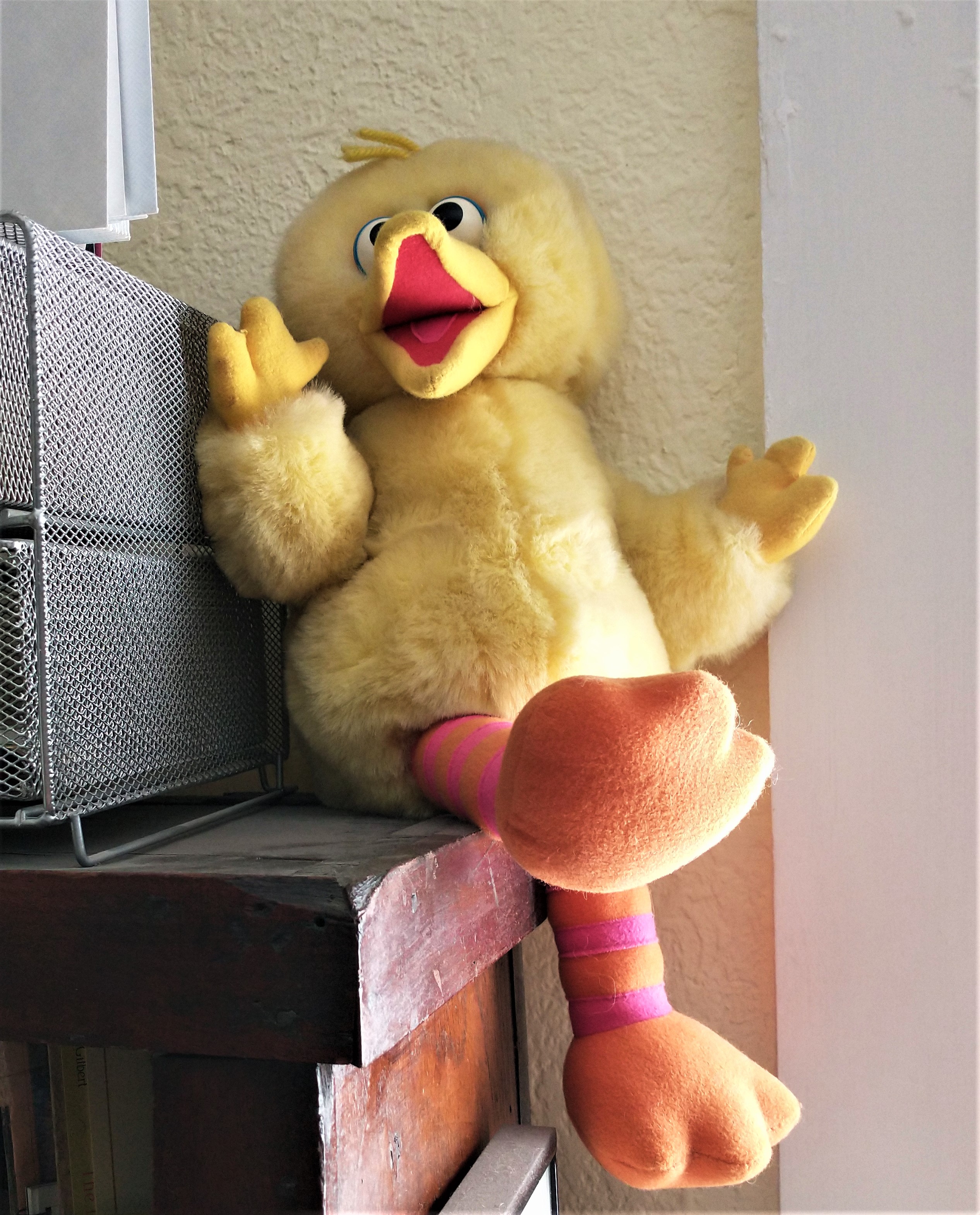 As I was in the other room, preparing for the show and reading a story on Huffington Post about a (extreme account) haunting, I heard a voice and realized the Big Bird talking toy had been activated in the other room. Big Bird is designed to be activated by light but he has also been known to go rogue now and again.