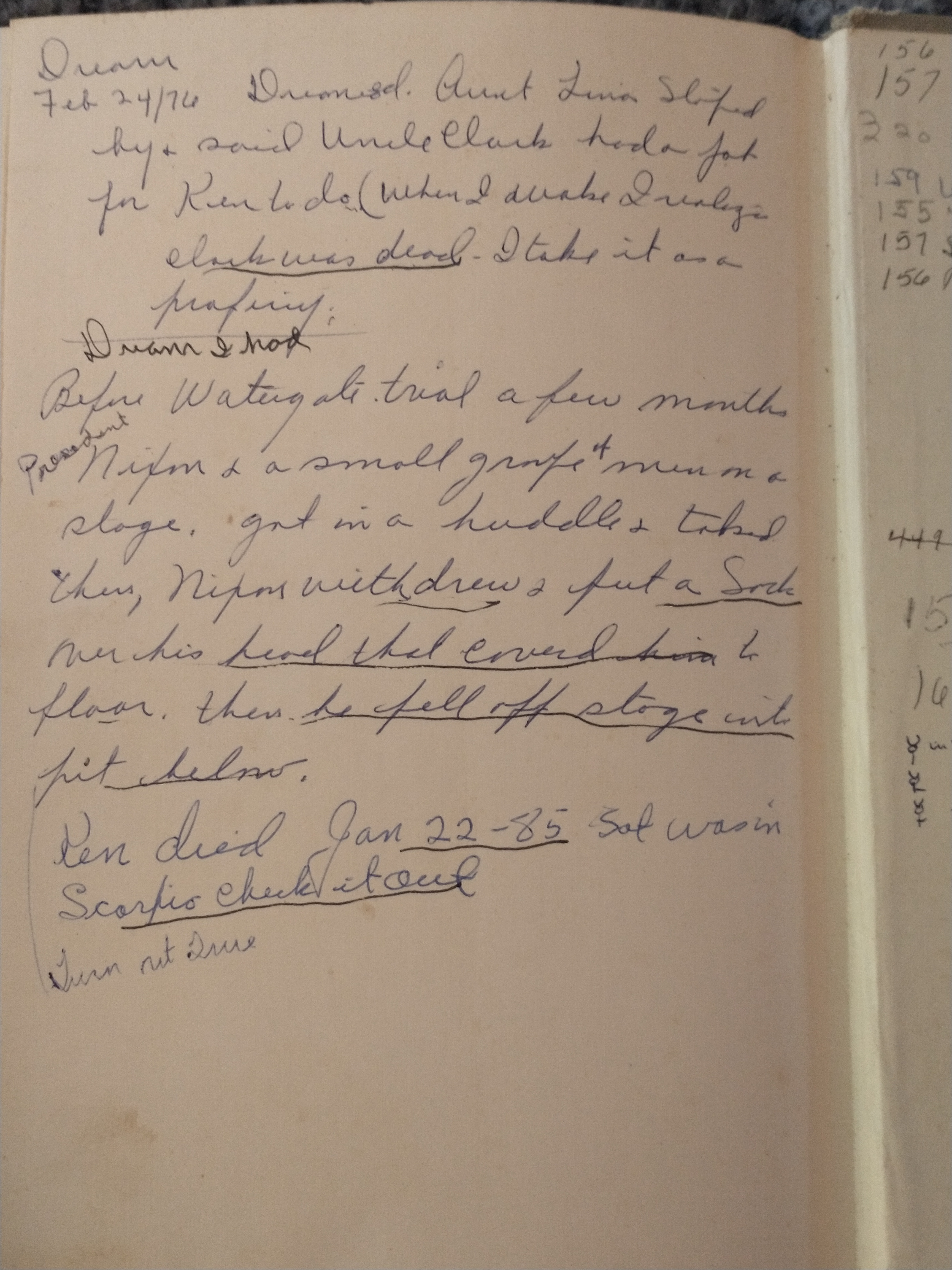 Grandmother was an Astrologer. Notes in the margins. 2 dreams on this page.