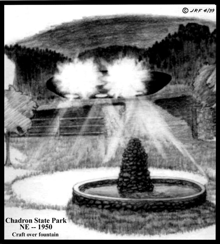 I, at first, thought I was seeing a strange reflection of something shining on the cloud. But I looked closely and I saw it was obviously something inside the north part of the cloud that was shining the two beams of light across the opening into the south part of the cloud. After staring at it for some time, the two beams of light began to move slowly. It seems they rotated slowly. Then, after being somewhat disoriented for a time, I saw a disc-like craft hover and move very slowly into the opening from north to south. And it just hovered there for a time. From that time on I don’t recall any other strange things happening.