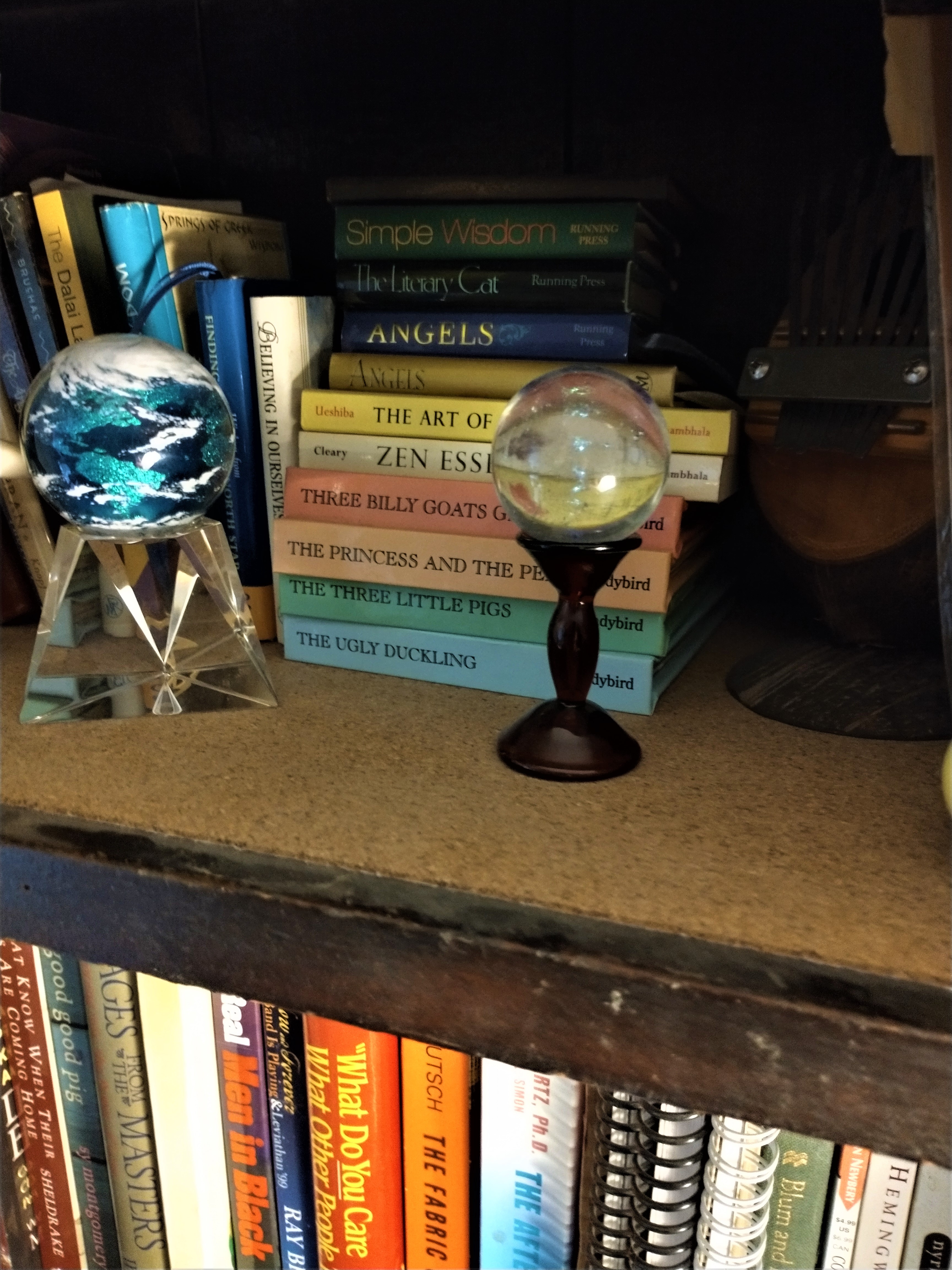 There are two marbles displayed on the shelf. The world. Earth. And the galaxy. I called it the universe until Andy corrected me.