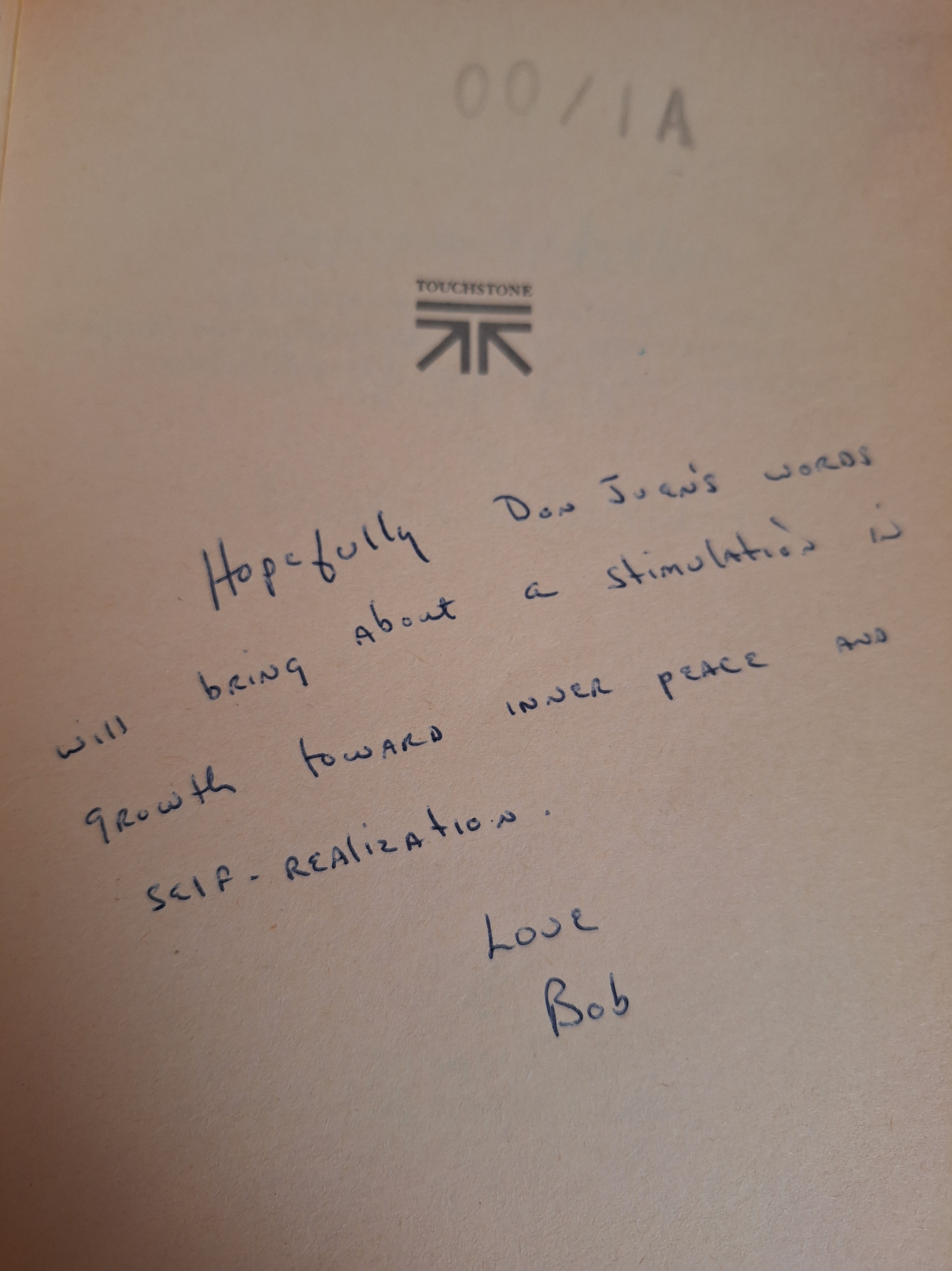 Okay, I’m game. Wondering at the significance of that specific selection, I expected to find the title in my small collection of Castaneda books. When I realized that book was missing, I asked, “Why I am supposed to read that book?”