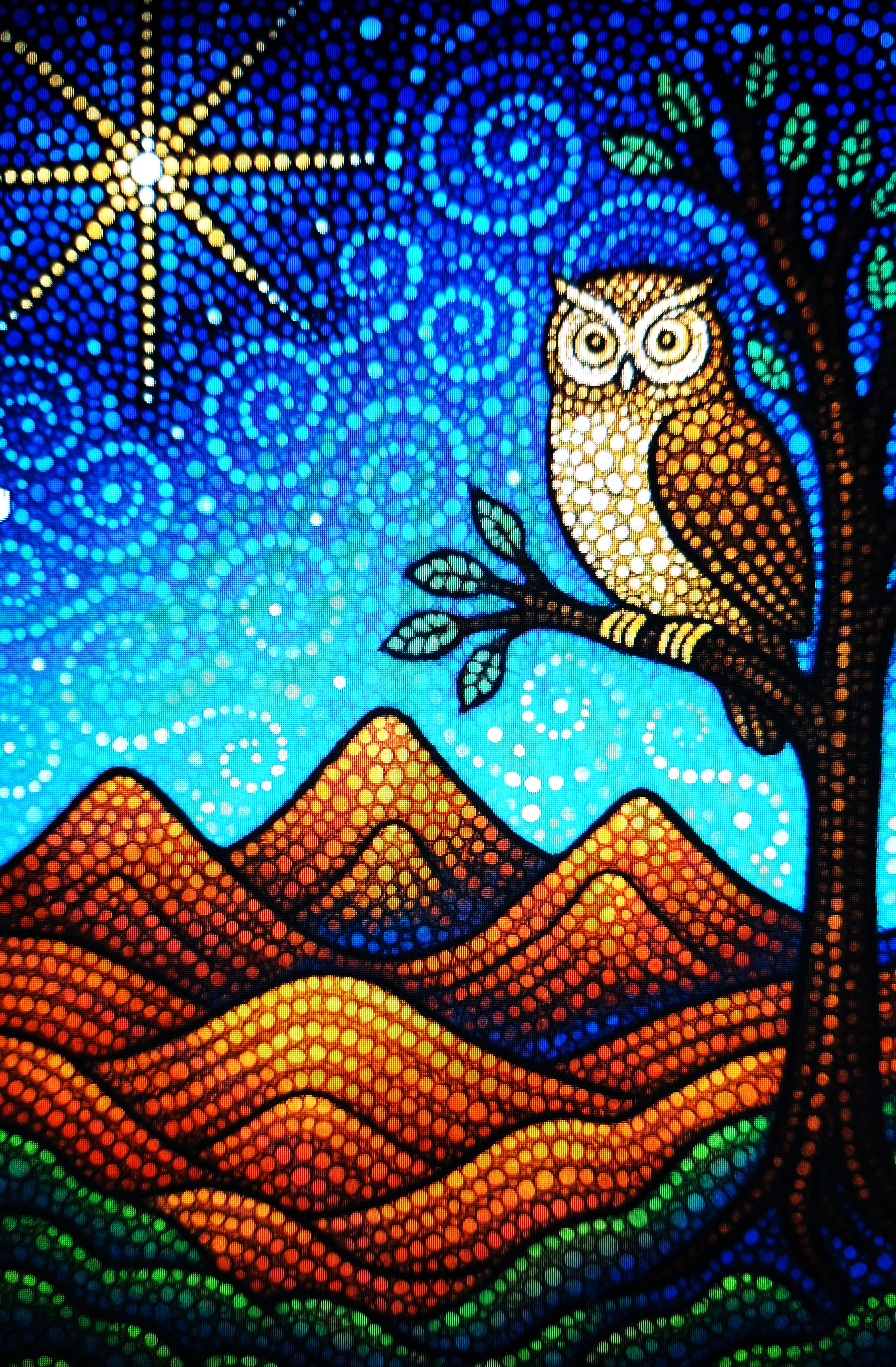 The owl in the tree, the spiraling stars, the mountains pulsing with color — it all speaks the quiet language of presence, of patient wisdom. Guides don’t shout; they shimmer. They wait. They show up in dot and dream, in light and landscape, in whispers between the lines.
