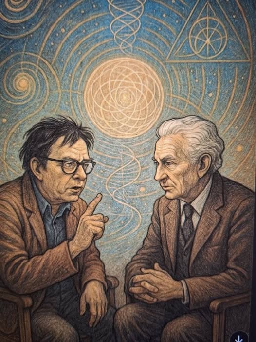 (A pause. The salon of geometry and light begins to ripple gently, as though acknowledging their union of thought.)