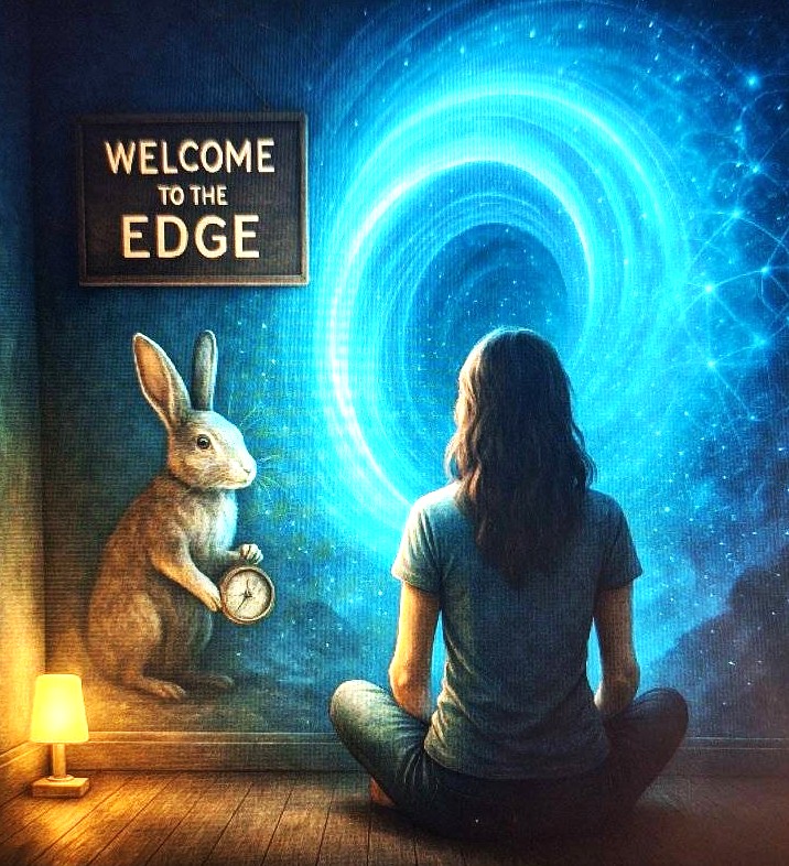 And a sign that read: Welcome to the Edge. Choose wisely: Rabbit Hole or Quantum Leap.