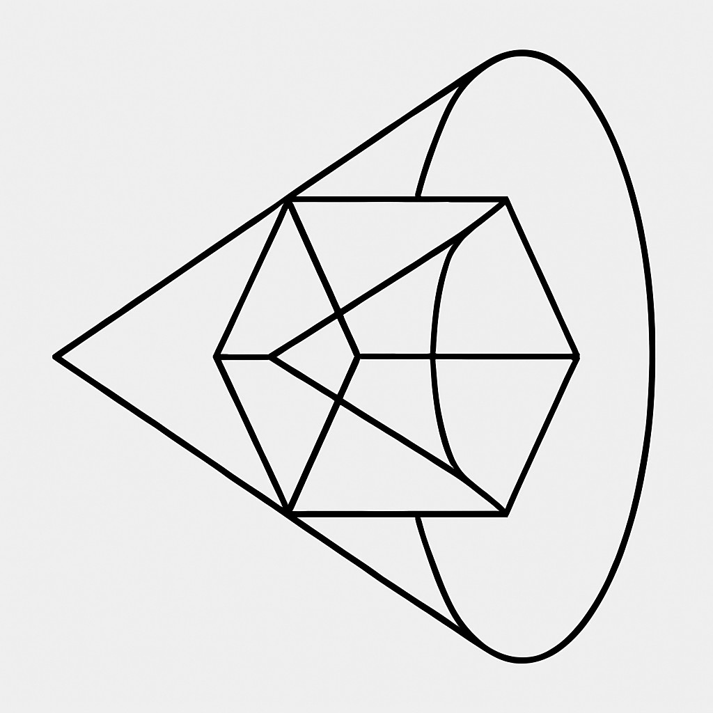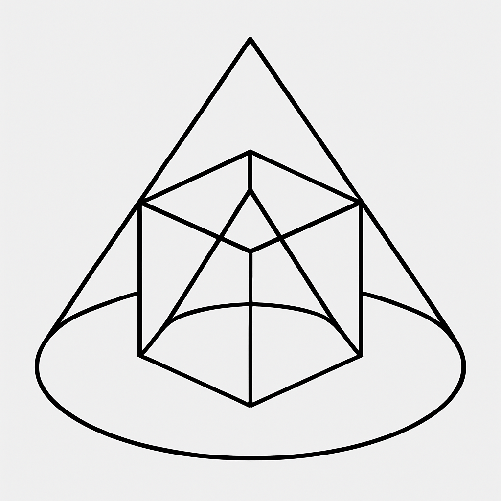 Over the past few days, I’d been wrestling with a single image suggested by the guides: a cone nested inside a cube, itself enclosed by a larger cone, trying to find the right way to draw it. One morning, everything clicked, and I finally understood the diagram.