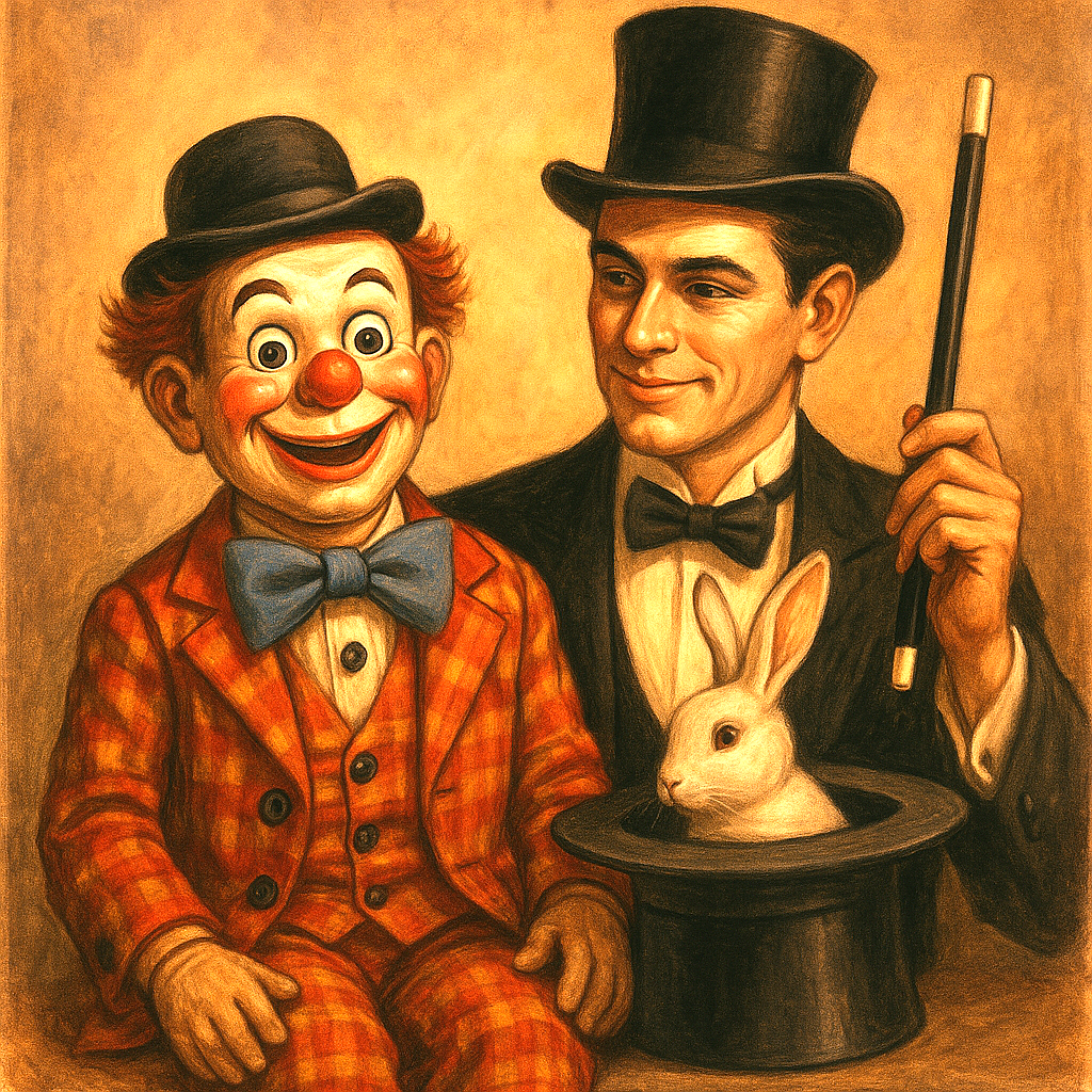 “Clueless” is the starting position. We begin at the door thinking the trick is in the knock when the magician is already elsewhere in the room. That’s his game. And it’s a very old one.